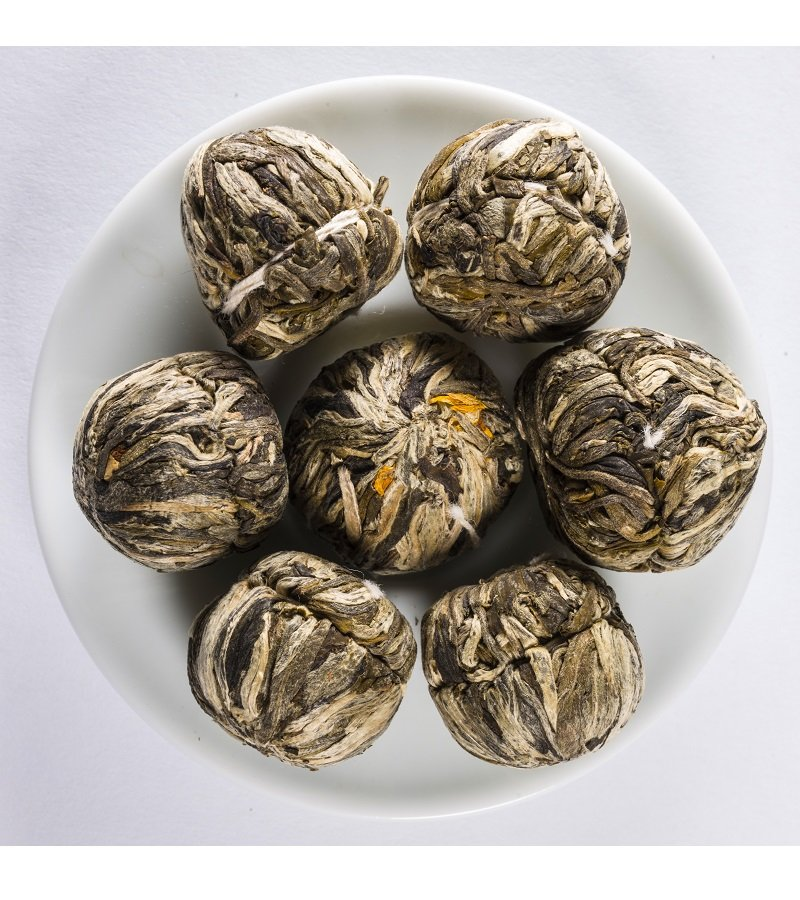 U Fujian Fuanu cvjetovi i zeleni čaj se ručno obrađuju pojedinačno i zatim se vješto suše kao čajne kuglice.