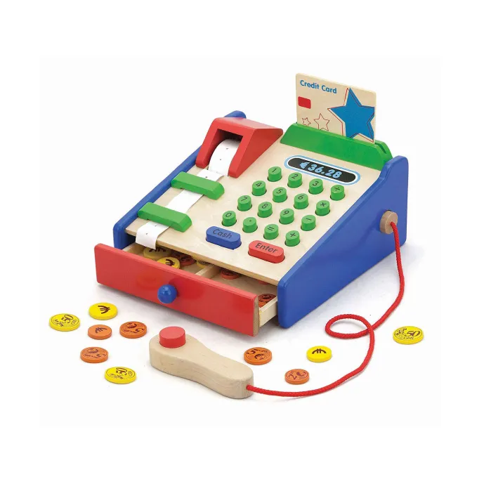 Set uključuje kasu, kreditnu karticu, 40 kovanica i jednu rolnu papira za kasu.